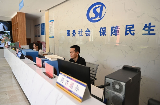 ↑2022年6月24日,工作人员在位于下党村的乡镇便民服务中心大厅里办公。