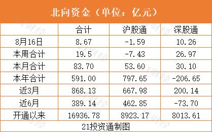 据21投资通(微信号ID:touzit21)智能监测,北向资金全天净买入8.67亿元。其中沪股通净卖出1.59亿元,深股通净买入10.26亿元。