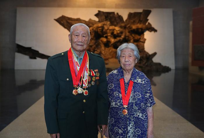 老战士宋广学(左)和张雅梅(右),2022年8月16日摄于辽宁省锦州市。新华社记者杨青摄