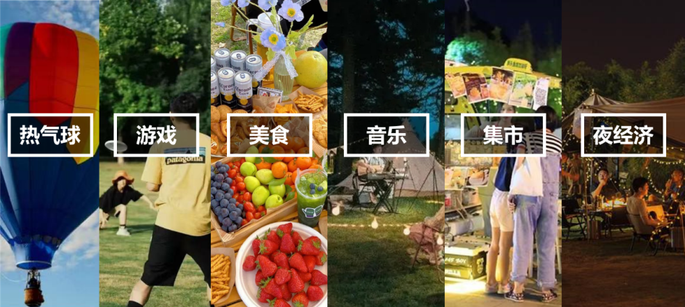 在上个月,我们更新迭代了原有的山谷营地产品,打造了复合型、综合型的营地,营地是一个载体,除了保留社交和打卡的属性,我们将热气球、游戏、运动、美食、音乐、集市、夜经济等更多微项目装入其中,大大丰富其可玩性,一经推出也深受市场的喜爱和认可,在为熹乐谷补充了夜间经济的同时,打造了独特的山谷营地产品。
