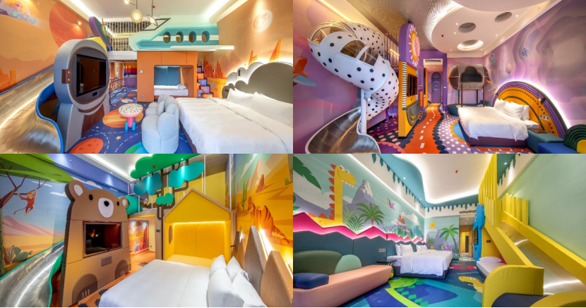 举例来说,在熹乐谷水世界悬崖星空泳池的设计过程中,团队赋予它的定位是一个抓眼球的引流项目,最终做到了悬崖边20米高的三面无边际泳池落地效果,坐拥青山白云的壮丽景观的落地效果,不管是视觉冲击或是游玩体验都具有极强的冲击力,项目推出后带来了相当多的话题和流量;星球无动力乐园项目在园区中心设计了大型UFO作为视觉焦点,周边分布其他游玩项目;今年年初我们还打造了50间网红客房,每一间房的设计风格都非常鲜明,目标群体是Z时代客群。