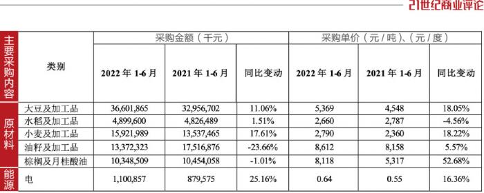 以大豆为例,2022年上半年,采购价格为每吨5369元,比去年同期涨了821元,单这一项,金龙鱼的采购成本就花了366亿元。