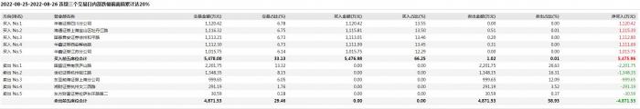 首先,至今弘业期货已发布9次交易异动的营业部成交情况。8月25日之前,买入前五的席位成交占比均为99.99%,8月25日、26日两天,买入前五的席位成交占比降至66.25%,同时买入、卖出席位成交金额的差值明显缩小。