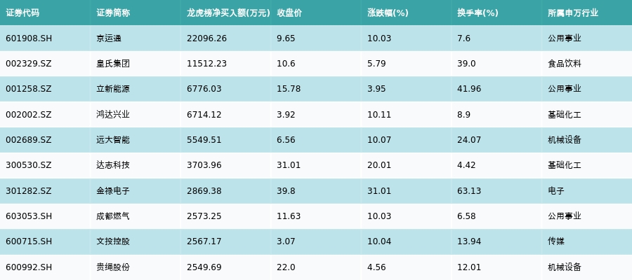 8月26日,龙虎榜营业部净买入额前10详情见下表: