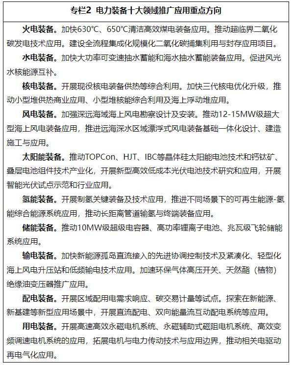 (二)电力装备技术创新提升行动