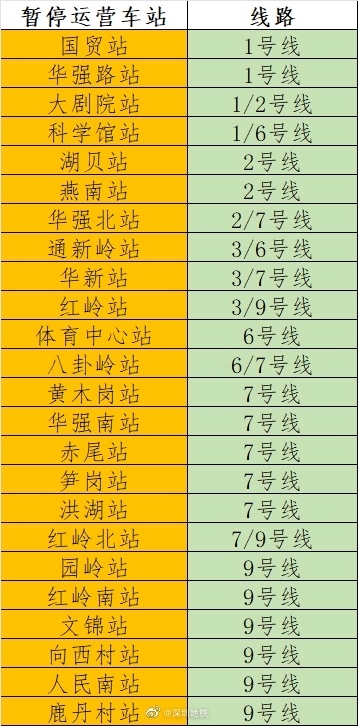 8月29日早上,深圳地铁发布运营公告,根据新冠疫情防控需要,自2022年8月29日起,罗湖区、福田区部分地铁车站将暂停运营服务(见下表),双方向列车不停站通过,具体恢复时间待另行通知。
