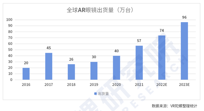 相较而言,AR受制于技术成熟度,产品普及度还不够。2022年上半年,AR头显出货量约29.6万台,海外出货量占总出货量超75%。国内AR头显上半年出货量约4.8万台,占比约为16.21%