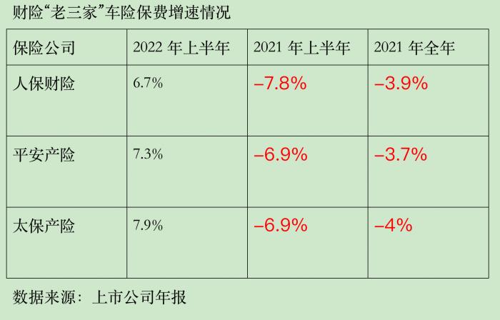 单从保费收入增速一项数据看,人保财险、平安产险及太保产险2022年上半年保费增速均维持在6.5%以上,分别为6.7%、7.3%及7.9%,较2021年上半年的-7.8%、-6.9%、-6.9%及2021年全年的-3.9%、-3.7%、-4%回温明显。