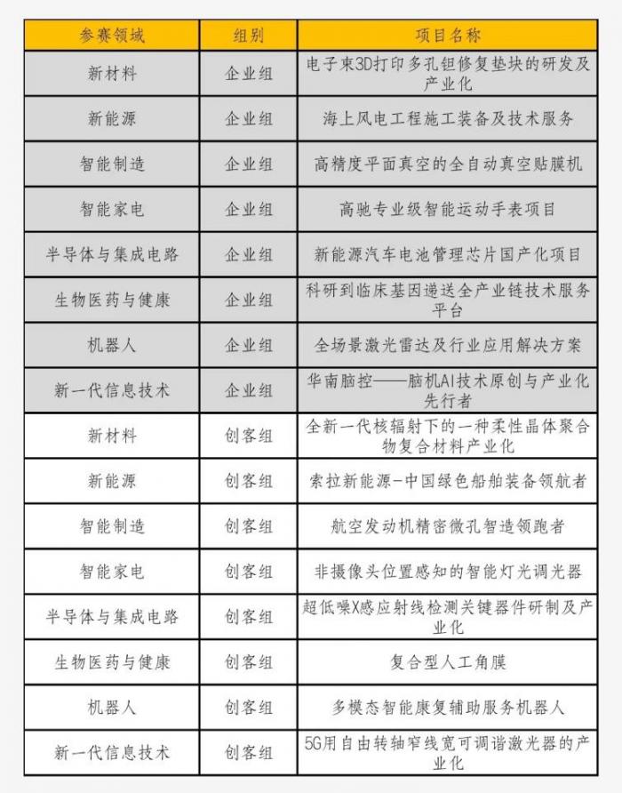 注:以上项目均已经过大赛组委会秘书处及第三方知识产权机构稽核通过,决赛具体信息及注意事项将由工作人员对接选手发放《决赛参赛指引》。如有疑问,请咨询程小姐13434557915。
