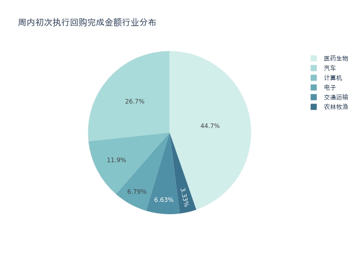 按照初次执行金额所在不同行业分布,金额最高的3个行业分别为:医药生物、汽车、计算机。