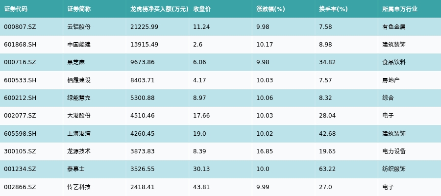 9月7日,龙虎榜营业部净买入额前10详情见下表: