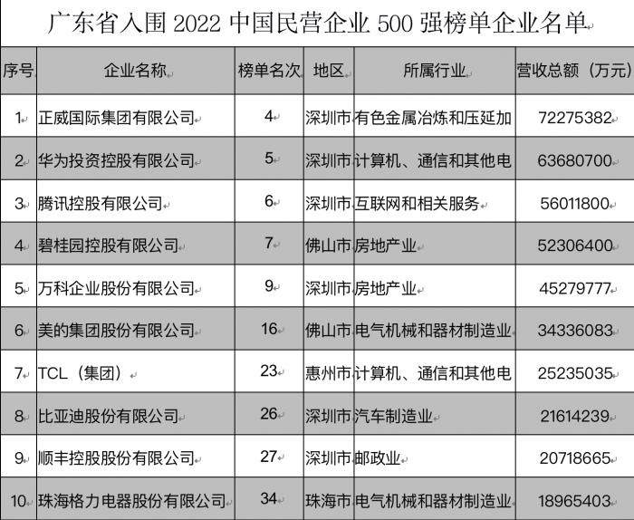 值得注意的是,今年中国民营企业500强前10强广东占5席,分别是正威、华为、腾讯控股、碧桂园、万科。