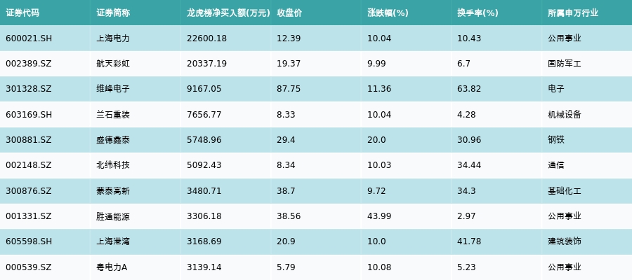 9月8日,龙虎榜营业部净买入额前10详情见下表:
