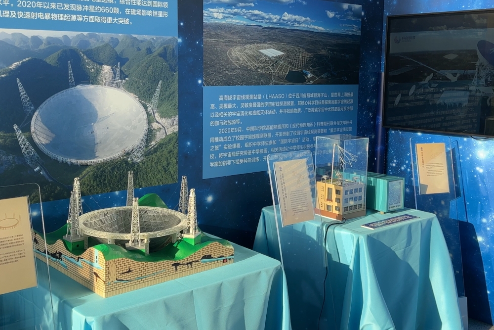 位于四川省稻城县海子山海拔4410米处的高海拔宇宙线观测站是国家重大科技基础设施,这里曾观测到1400万亿电子伏特的伽马光子,有助于进一步解开宇宙线的奥秘。近年来,为普及宇宙线知识,中科院高能物理研究所牵头推进校园宇宙线观测网建设,一座座小型宇宙线观测站出现在一所所中学楼顶。展台上,由北京市东直门中学学生研制的宇宙线描迹仪,直观地显示着宇宙线的行动轨迹。
