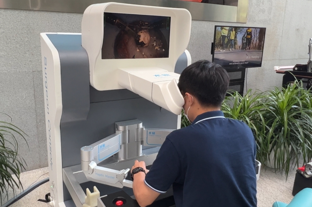 未来,我们的生活还将如何改变?活动现场,一台腔镜手术机器人引来许多观众围观——只见工作人员坐在控制台前遥控操作,两米之外,三只多关节机械臂正灵巧轻柔地剥离小小的鹌鹑蛋壳,而内膜丝毫未伤。