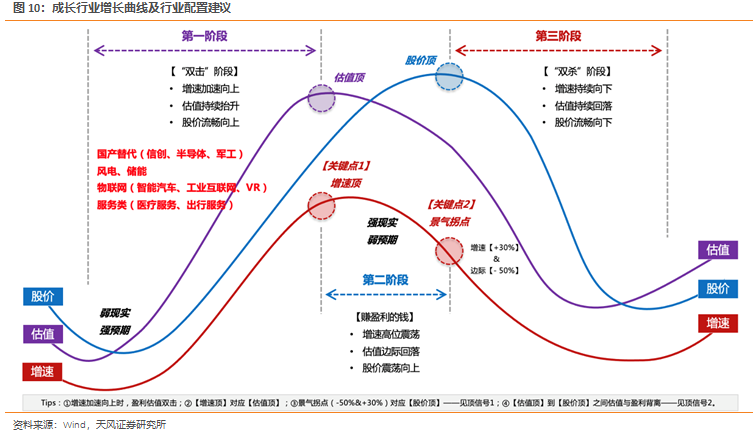 中期来看,支撑成长板块超额收益的仍然是自身景气方向。短期传统经济板块的悲观预期修复、高景气赛道消化拥挤度之后,风格趋势可能仍然是新经济占优。建议关注明年可能维持高增速或者可能增速大幅提升的方向,包括【国产替代(信创、半导体、军工)、风电、储能、物联网(智能汽车、工业互联网、VR)、服务类(医疗服务、出行服务)】。