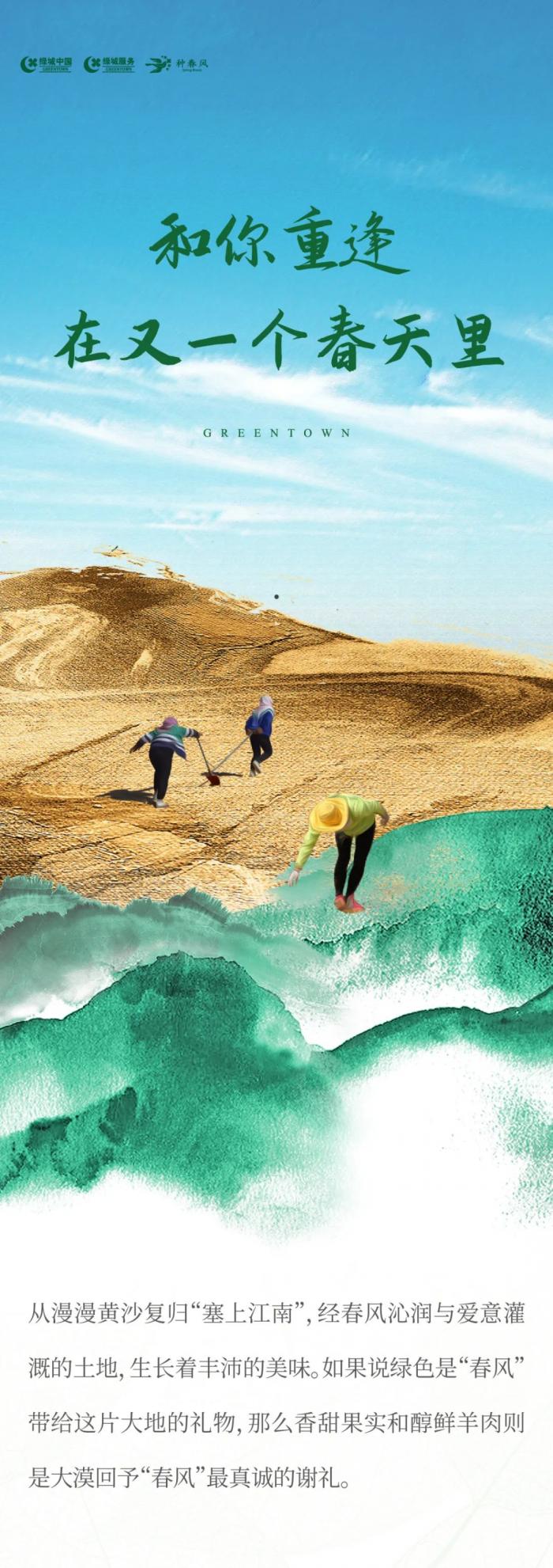 平芜尽处是春山。从西北到全国,从捐种梭梭到绿色生活的倡导,“种春风”是绿城美好生活理念的践行,更是绿城“六品”精神的体现。