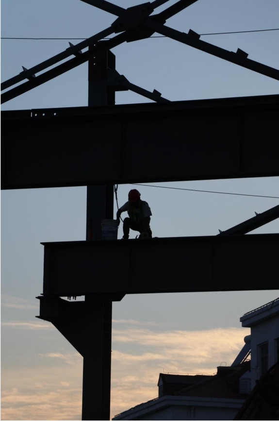 夕阳辉映下的建筑工人剪影