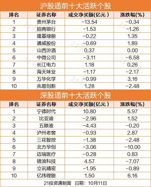 个股方面,贵州茅台(600519.SH)、五粮液(000858.SZ)、中微公司(688012.SH)分别获北向资金净卖出13.54亿元、4.43亿元、3.11亿元。