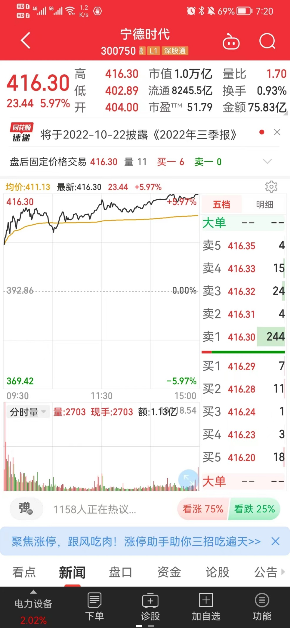 锂电板块利好频传,并直接传导到了二级市场股价。10月11日,锂电股快速拉升。截至收盘,锂电池指数涨超2%。其中,宁德时代涨幅5.97%,股价重回400元关口,市值也重回万亿元大关。