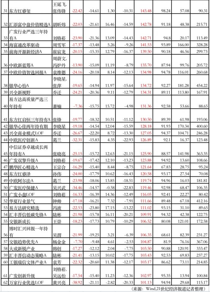 从今年前三季回报均值来看,股票型基金为-21.18%,混合型基金为-15.42%。