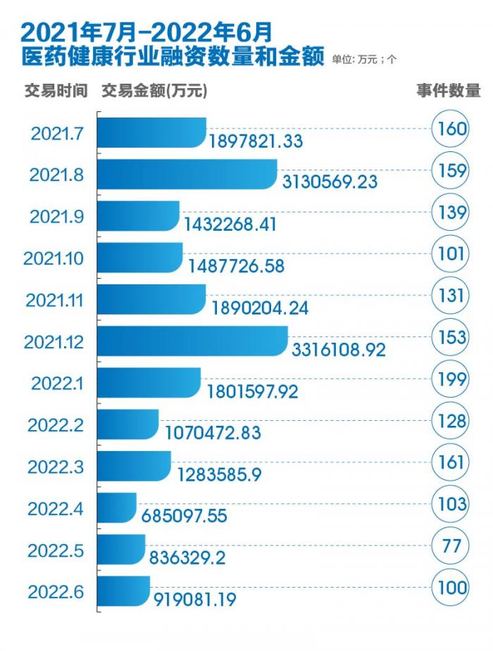 医药健康行业投资环境正在经历巨变。受估值倒挂、国家集采等因素影响,行业泡沫正逐渐被挤出,同时,技术的进步,又为行业发展添了一把火。面对国内16万亿的市场前景,什么样的企业更受资本青睐? 医药健康行业的投资热点在哪些领域? 透过2021年7月-2022年6月间医药健康领域投资数据解读,或可感知诸多变化。