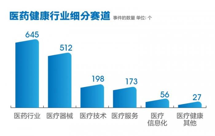 从融资事件的细分行业来看,统计期间内,数量最多的行业是医药行业相关融资,共有645起融资,占比40.04%,其次为医疗器械,共有512起融资,占比31.78%,其余依次为医疗技术、医疗服务、医疗信息化以及医药健康其他,分别为198起、173起、56起和27起。