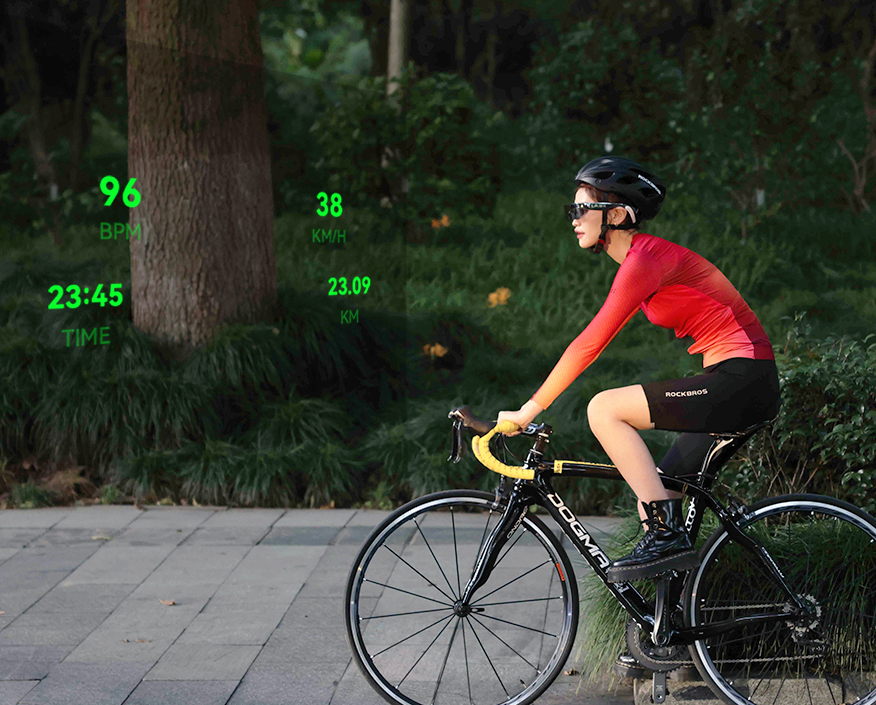 整体来看,搭载在Meta Lens上更轻更薄更高亮度的binoculars 双目AR显示系统,并以双目方案,降低了用户眩晕感提高了舒适度,极大增加了户外场景下的使用舒适度。