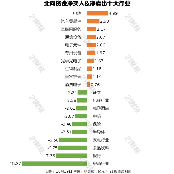 据21投资通智能监测,10月19日,北向资金净卖出60.02亿元,其中沪股通净卖出45.15亿元,深股通净卖出14.88亿元。