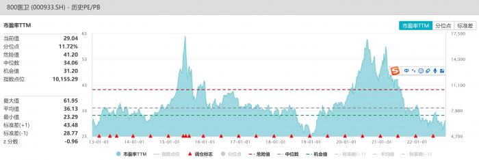 从估值上看,截至10月21日,800医卫PE估值为29.04倍,位于近10年以来的11.72%估值分位数,等于低于历史88%以上时间区间。