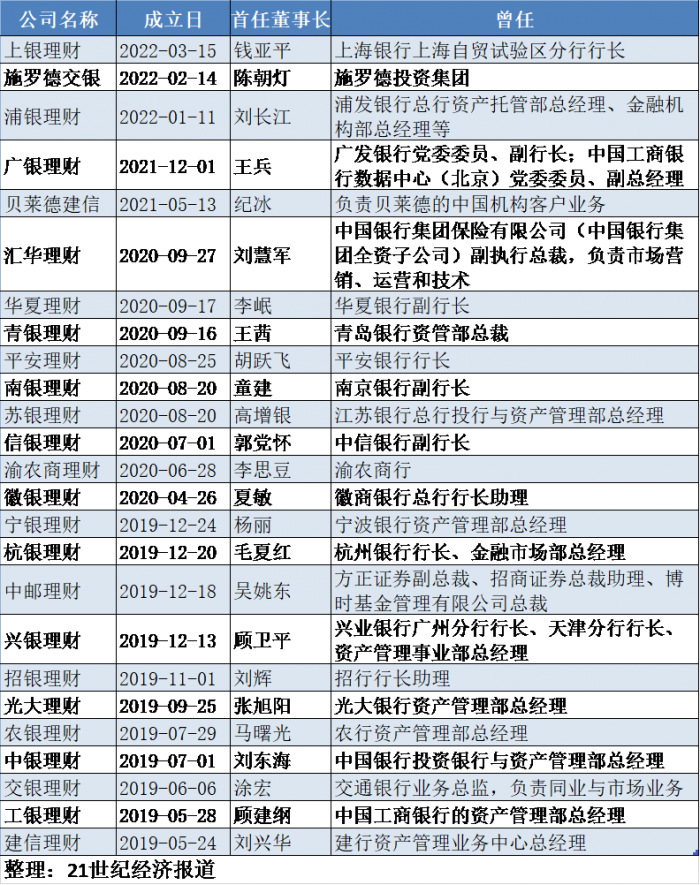 唯一的例外是中邮理财董事长吴姚东,他此前并未在银行业任职,而是在券商、基金公司从业多年。曾任招商证券总裁助理、总裁办公室董事总经理,博时基金管理有限公司总裁,方正证券副总裁。