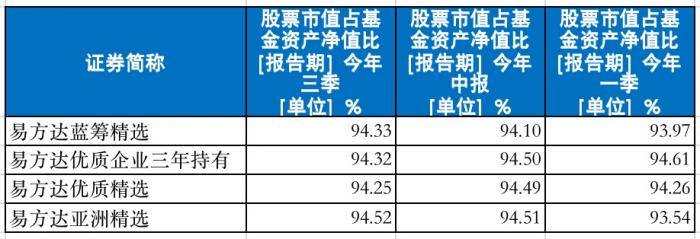 总体来看,张坤4只基金继续保持逾94%高仓位运作,与二季度末的仓位水平基本一致,增减不超过0.25个百分点。