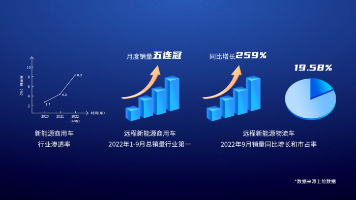 不过,远程获得资本市场青睐,既有其自身背景和实力加持,也与宏观背景密切相关。乘联会统计数据显示,9 月国内新能源零售渗透率为 31.8%,1-9月累计渗透率超过26%。与此形成对比的是,新能源商用车市场信息联席会发布《新能源商用车市场信息周报第60期》信息显示,2022年9月,新能源商用车销量3.3万辆,同比增长95.9%,渗透率达到11.8%,首次超过11%;2022年1-9月,新能源商用车销量20.4万辆,同比增长80.1%,渗透率达到8.2%,首次超过8%。