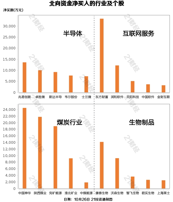 据21投资通智能监测,10月26日,北向资金净买入34.33亿元,已连续两日净买入。其中沪股通净买入1.53亿元,深股通净买入32.79亿元。