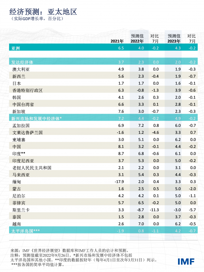 IMF指出,受全球金融紧缩、乌克兰危机以及中国经济增速放缓等因素影响,预计2022年和2023年亚太地区经济增长将放缓。这种具有挑战性的形势让亚太地区的政策制定者面临艰难的政策权衡取舍。