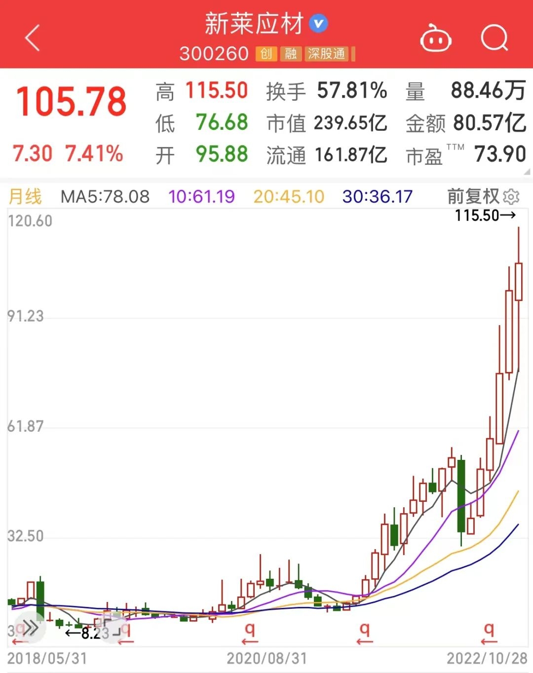 新莱应材拥有众多时下热门题材,包括半导体领域的光刻机+芯片,OLED、食品安全等。股价表现方面,该股股价近期再创历史新高,远强于大盘。从前回溯看,该股近十年来累计涨幅超过23倍。