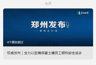 今日(30日)下午,“郑州发布”连发两则消息,回应“富士康员工返乡”一事。