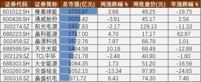 编者按:《光伏A股周报》旨在记录、评述A股光伏板块和龙头企业的一周行情表现,总结影响行情表现的关键因素,任何观点不构成投资建议。