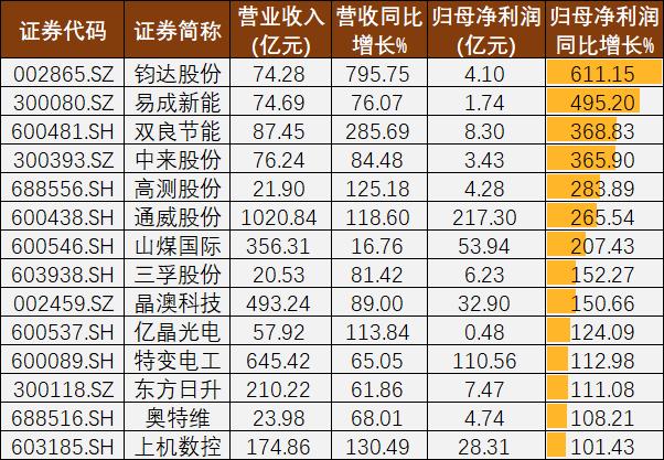 据21世纪经济报道新能源课题组的不完全统计,目前披露三季报的上市公司中,有14家公司的归母净利润同比增长超100%。其中,龙头股表现出色,例如通威股份营收破千亿元,TCL中环的归母净利润实现连续7个季度环比增长。