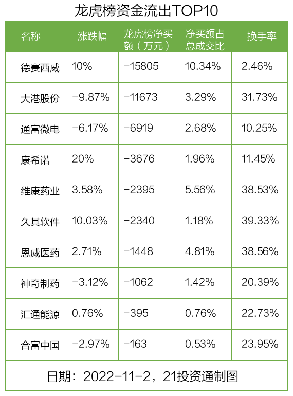 而龙虎榜中资金净流出最多的是德赛西威(002920.SZ),被净卖出为1.58亿元,占总成交金额的10.34%。德赛西威收盘上涨10%,换手率为2.46%。