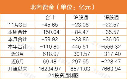 据21投资通智能监测,北向资金全天净卖出45.65亿元,其中沪股通净卖出23.08亿元,深股通净卖出22.57亿元。