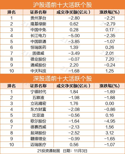 个股方面,长江电力(600900.SH)被北向资金净卖出5亿元,中国联通(600050.SH)净卖出3.85亿元,固德威(688390.SH)净卖出3.49亿元,贵州茅台(600519.SH)净卖出2.8亿元。