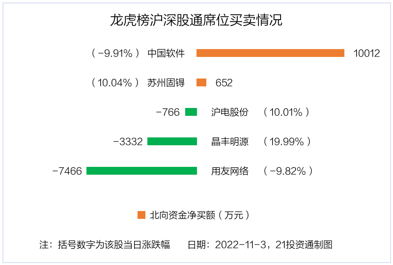 机构净卖出的个股中,金额最多的是中国软件(600536.SH),当日收盘下跌9.91%,换手率为9.82%。
