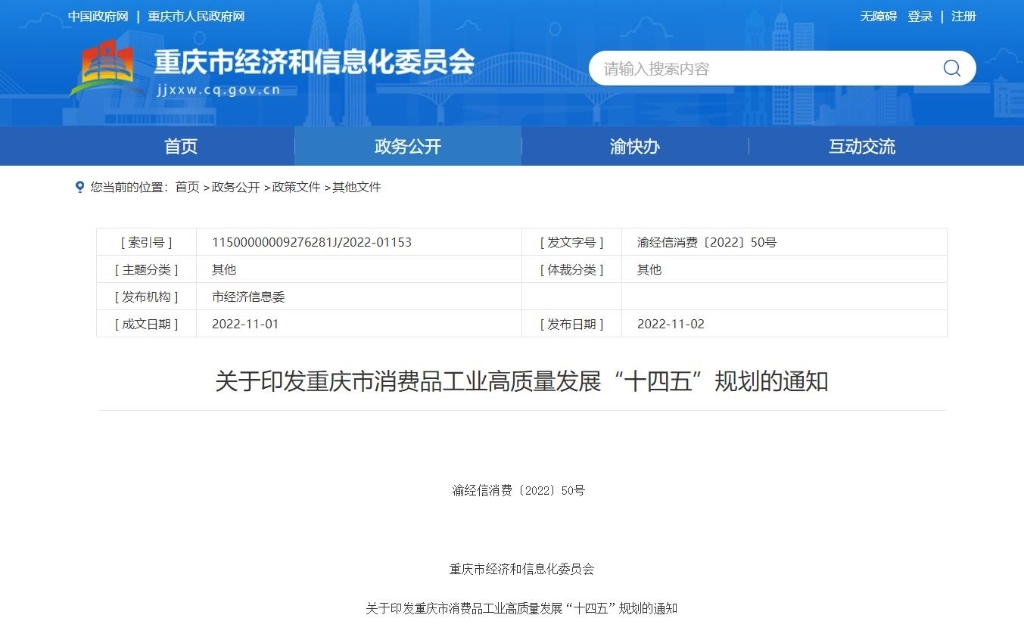 重庆市经济信息委官网截图。