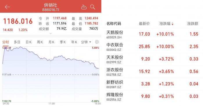11月3日,供销社概念股继续大涨,中农联合、天鹅股份4连板,天禾股份3连板。