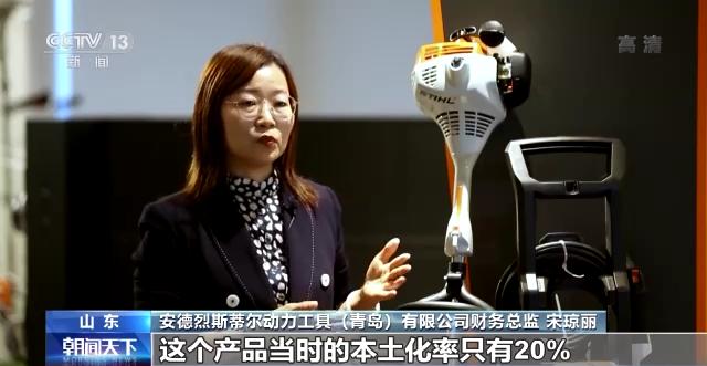 安德烈斯蒂尔动力工具(青岛)有限公司财务总监 宋琼丽:这个产品当时的本土化率只有20%,但是到了2020年我们生产的这款高压清洗机产品,本土化率已经达到92%,在20%到92%的数字背后,其实是我们中国日益强大的供应链体系,还有我们的供应商能看到的他们的技术和质量水平的快速提升。