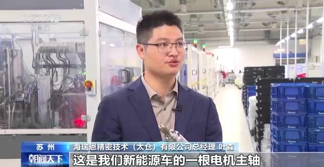 海瑞恩精密技术(太仓)有限公司总经理 叶森:这是我们新能源车的一根电机主轴,也是我们正在试制的一个产品。非常巧的是我们的核心供应商在我们出门左转500米的地方,我们的客户在我们出门左转600米的地方。除了这个产品以外,我们统计了一下,我们85%的其他产品也都在我们长三角区域一体化的这个范围之内。