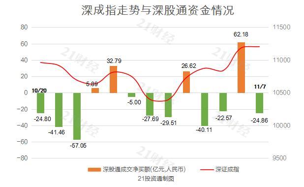 北向资金全天呈现单边净流出态势,净卖出金额为40.32亿元,其中沪股通净卖出15.46亿元,深股通净卖出24.86亿元。