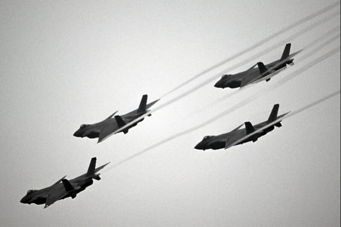 11月5日,参加第十四届中国航展的中国空军歼-20飞机多机编队进行适应性飞行训练。 新华社发