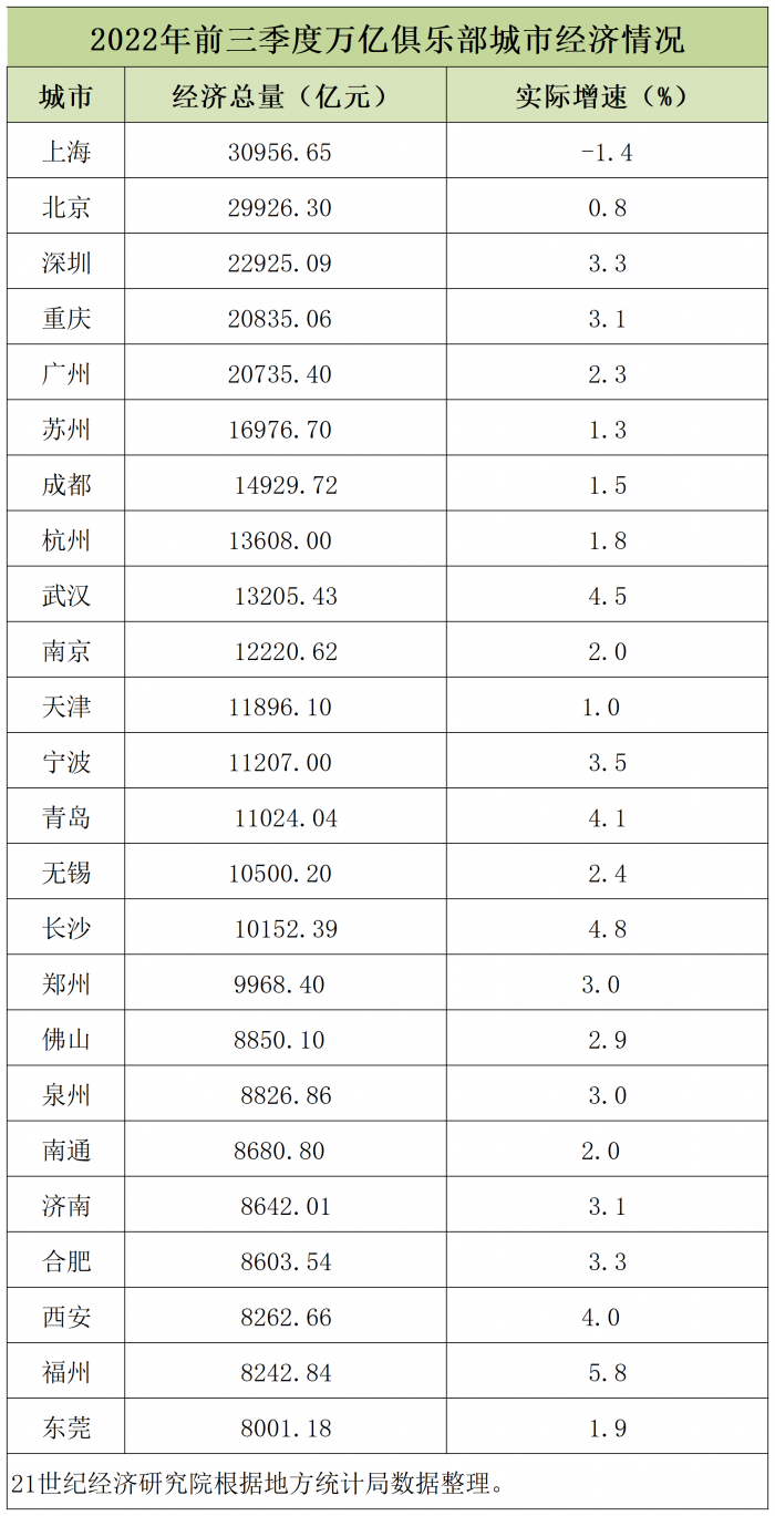 21世纪经济研究院研究员 吴文汐 实习研究员 王小月 截至最新数据,24座万亿GDP城市前三季度成绩单已经全部揭晓。